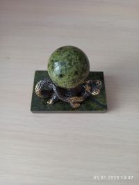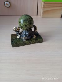 Статуэтка из бронзы "Змея у пня" с шаром змеевик размером 7,5х5х5,5 см и весом 175 г.