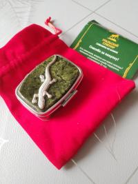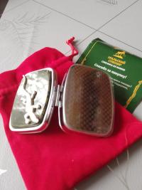 Таблетница на 2 отделения змеевик с ящерицей цвет серебро размером 5,5х4,7х1,7 см и весом 50 г.