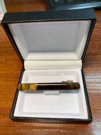 Зажим для галстука с камнем тигровый глаз размером 6,5х1х2 см и весом 35 г.