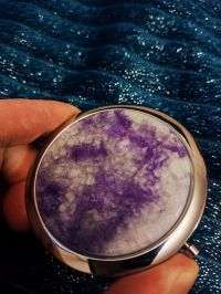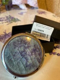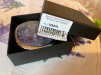 Красивое и удобное зеркальце, только сам камень сиреневый, зеленого оттенка совсем нет. Но так тоже оцень красиво. Товар пришел в элегантной и прочной коробочке, надежно упакован. Очень подойдет для подарка. Рекомендую!Замечательное карманное зеркало, ровненькое, гладенькое, защелки