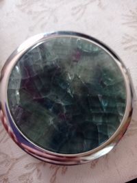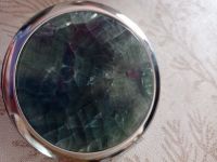 Зеркало круглое зеленый флюорит цвет серебро размером 7х7,5х1,5 см и весом 60 г.