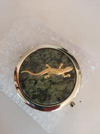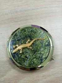 Зеркальце круглое из змеевика ящерица прямая цвет золото размером 7х7,5х1,5 см и весом 90 г.