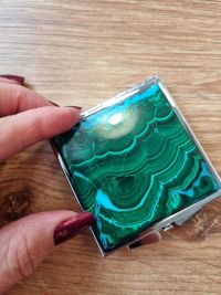 Зеркало квадратное карманное из малахита цвет серебро размером 6х6х1 см и весом 70 г.