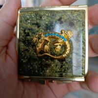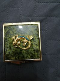 Зеркальце квадратное из змеевика круглая ящерица цвет золото размером 6х6х1 см и весом 75 г.