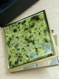 Зеркальце квадратное из змеевика цвет золото размером 6х6х1 см и весом 70 г.