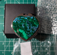 Зеркало карманное "Сердце" из малахита с хризоколлой цвет серебро размером 7х6,5х1 см и весом 60 г.