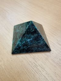 Пирамида изготовлена вручную из камня змеевик, имеет размеры 4х4 см и весит 55 г.