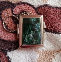 Складное зеркало брелок из серафинита прямоугольное размером 5х4,5х1 см и весом 40 г.