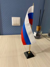Флагшток с флагом РФ на подставке из черного змеевика размером 4,5х4,5х26 см и весом 120 г.