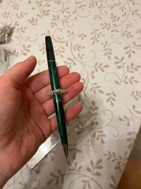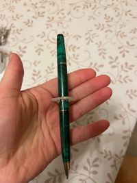 Малахитовая шариковая ручка размером 15х1х1 см и весом 50 г.