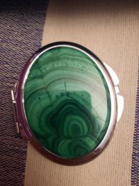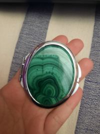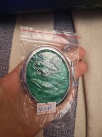Зеркальце овальное из малахита цвет серебро размером 7х6,5х1 см и весом 60 г.