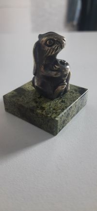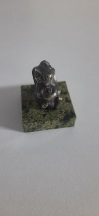 Статуэтка "Заяц с морковкой" из бронзы и змеевика размером 3х3х4 см и весом 50 г.