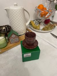 Кофейная пара из камня лемезит размером чашка 5,8х5,8х6,8 см, блюдце 9,3х9,3х1,8 см. Размер чашки 5,8х5,8х6,8 см, блюдце 9,3х9,3х1,8 см и весом 250 г.
