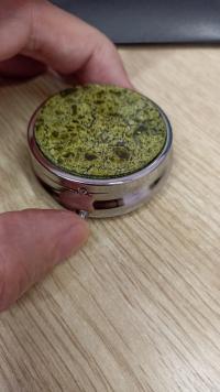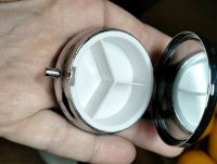 Хорошая таблетница! Выбирал с типом замка "кнопка", чтобы одной рукой открывать, но открывается пока довольно туго -- надо помогать второй рукой. Выбирал хромированную, потому как рано или поздно поцарапается, а этих моделях камень только с одной стороны. И если она лежит в кармане джинсов, то таблетки нагреваются. Еще и громыхают таблетки-шарики при ходьбе. ;))) Надо выбирать карманы.Неброский рисунок.