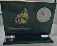 Часы настольные "Корабль" камень змеевик размером 23х8х17 см и весом 1460 г.