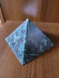 Пирамида выполнена вручную из камня змеевик, имеет размеры 10,5х10,5 см и весит 770 г.