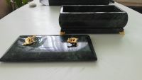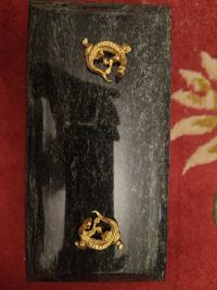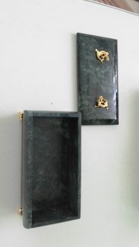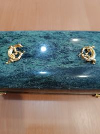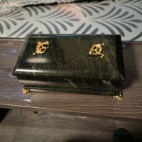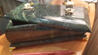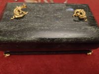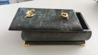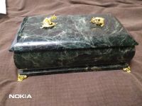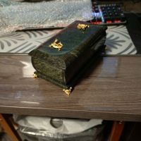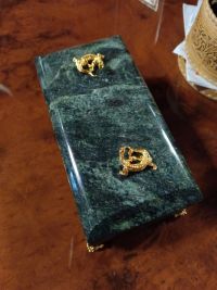 Шкатулка красивая, все на месте, ничего не отклеивается. Камень темный, красивый. Вещь тяжелая, серьезная. Хороший подарок.Отзыв
