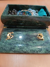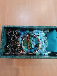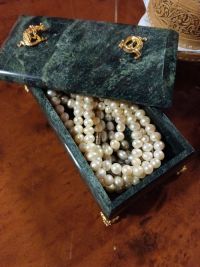 Просто в восторге от этой вещицы даже не смотря на то что ножка одна отклеилась, приклеила ее на супер клей, но правда недостаток в том что шкатулка все равно качается, а значит ножки разные по размеру! В остальном все просто превосходно сам цвет, хоть я и не любитель зелёного цвета, но выбирая из всех у продавца я выбрала именно эту, она бесподобна ??, теперь в ней лежат все мои бусы и браслеты из натуральных камней!Красивая