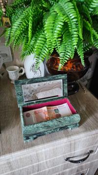 Часто задаваемые вопросы про Шкатулка для денег "Купюра" с зеркалом змеевик 19x10x8 см 112190