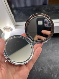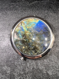 Зеркало круглое из камня лабрадор цвет серебро размером 7х7,5х1 см и весом 120 г.