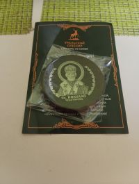 Икона автомобильная "Николай Чудотворец" обсидиан коричневый 47 мм размером 4,7х4,7х0,7 см и весом 30 г.