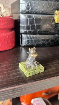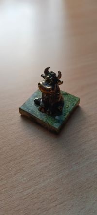 Сувенир "Бычок с подковой" бронза змеевик размером 3,6х3,6х4,2 см и весом 60 г.