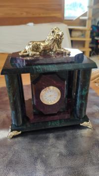 Часы из змеевика и бронзы "Лев" размером 18х12х19 см и весом 2900 г.