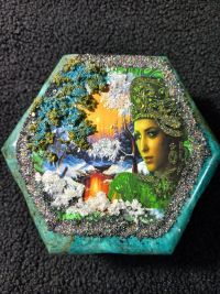 Каменная шкатулка "Хозяйка медной горы зима" 14х12,5х7 см размером 14х12,5х7 см и весом 1200 г.
