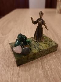 Сувенир статуэтка "Хозяйка медной горы" бронза камень змеевик малахит размером 5х2,5х4,5 см и весом 50 г.